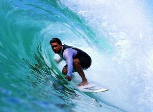 - Laird Hamilton, op die ouderdom van 50, het die orkaangolf van Teahupoʻo aangedurf. Gary Linden, op 65, het die uitdagende “Jaws” van Hawaii aangedurf en gewen.
