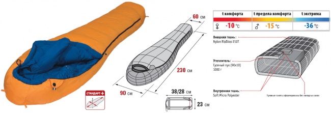 Den tekniske pas indeholder informationer om materialer og egenskaber ved soveposen. Først og fremmest er temperaturskalaen vigtig (dens grænser kan variere for mænd og kvinder). Komforttemperaturen angiver den temperatur, hvor en person kan sove hele natten uden at fryse. Dette er den nedre komfortgrænse for kvinder.