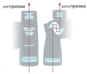 Durch Prismen wird das Bild dargestellt. Die prismatische Umkehrsysteme von Ferngläsern gibt es in zwei Varianten: das klassische System, bekannt als Porro-Prismen, und das Dachkant-System.