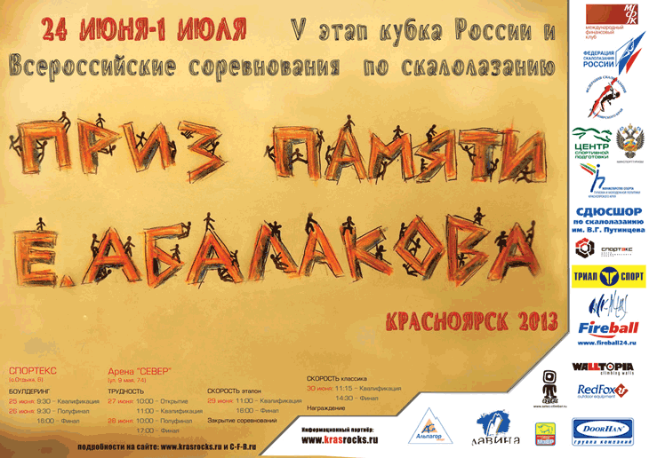Ωστόσο, οι πρώτοι διεθνείς διαγωνισμοί πραγματοποιήθηκαν μόνο μετά από είκοσι ένα χρόνια, το 1976. Και η πόλη του Κρασνογιάρσκ από το 1964 έγινε το σημείο διεξαγωγής πανρωσικών αγώνων αναρρίχησης. Αυτή η διοργάνωση είναι αφιερωμένη στη μνήμη των επιφανών αλπινιστών αδερφών Αμπαλάκοφ. Παραδοσιακά, αποτελεί συνάντηση των κορυφαίων αναρριχητών της χώρας.