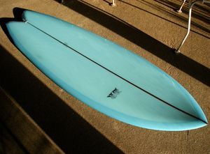Fishboard – a modified shortboard, short with a pointed or rounded nose and a distinctive tail, designed for non-professionals.