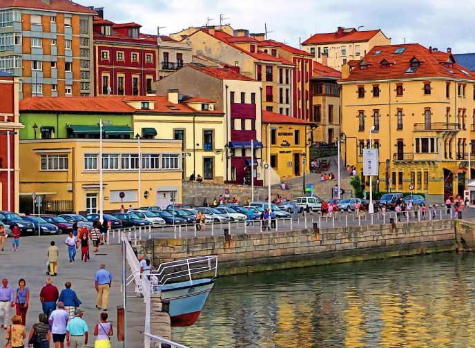 بزرگترین شهر صنعتی و بندری آستوریاس با جمعیتی حدود ۲۸۰ هزار نفر، بر روی تپههای سبز ساحلی گسترده شده است.