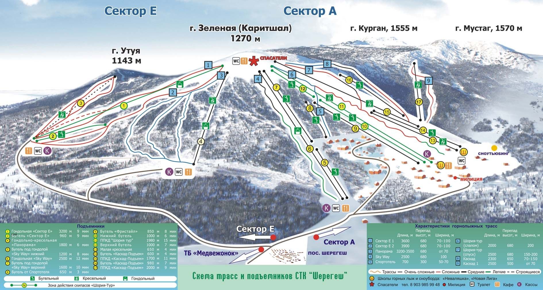 Strefa zjazdowa znajduje się na stokach Gór Zielonej, Mustag, Utuja i Kurgan. Główna infrastruktura związana jest jednak z Górą Zieloną, która została podzielona na sektory: A, E oraz Sektor Południowy.